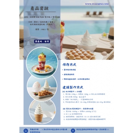 - 建議使用專業冰沙 / 雪泥 / 奶昔 / 雪花冰機器,並依品牌口感標準調整
